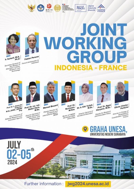 Unesa.ac.id., SURABAYA—Universitas Negeri Surabaya (UNESA) menjadi tuan rumah Joint Working Group (JWG) Indonesia-Prancis XIII 2024. Program sekaligus forum kerja sama bidang pendidikan antara Pemerintah Indonesia dan ...