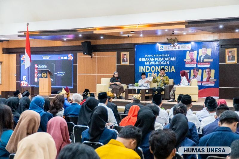 Unesa.ac.id., SURABAYA—Universitas Negeri Surabaya (UNESA) menggelar dialog kebangsaan dengan tema "Gerakan Peradaban Mewujudkan Indonesia Emas" di Auditorium Lantai 11, Rektorat Kampus Lidah Wetan, Surabaya pada Sabtu, ...
