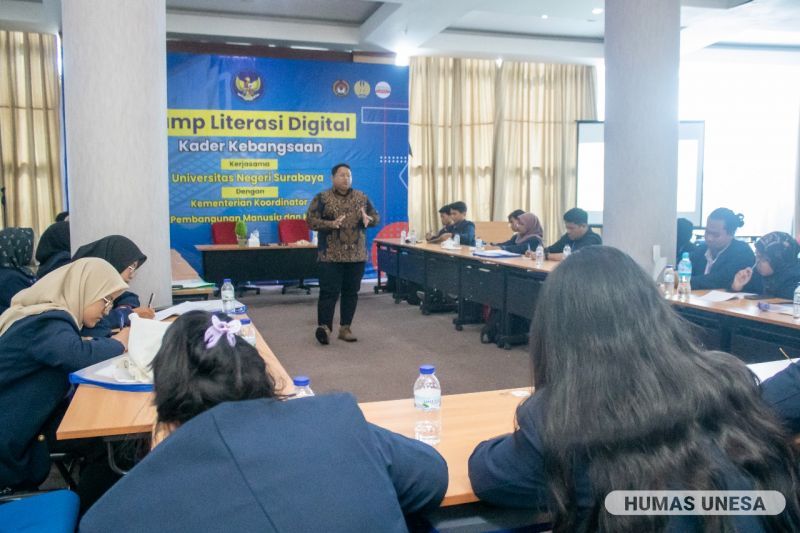 Unesa.ac.id., SURABAYA--Mahasiswa dari berbagai fakultas mengikuti Camp Literasi Digital yang diselenggarakan Kementerian Koordinator Bidang Pembangunan Manusia dan Kebudayaan (Kemenko PMK) bersama Universitas Negeri Surabaya (UNESA) di Student Center, Kampus Lidah Wetan, pada Senin-Selasa, 11-12 September 2023.
