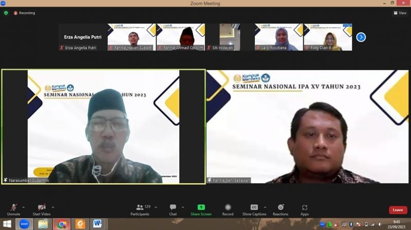 Unesa.ac.id., SURABAYA--Prodi S-1 Pendidikan Sains, Fakultas Matematika dan Ilmu Pengetahuan Alam (FMIPA) Universitas Negeri Surabaya (UNESA) menyelenggarakan Seminar Nasional Pendidikan IPA ke-15 secara daring pada Sabtu, 23 September 2023.