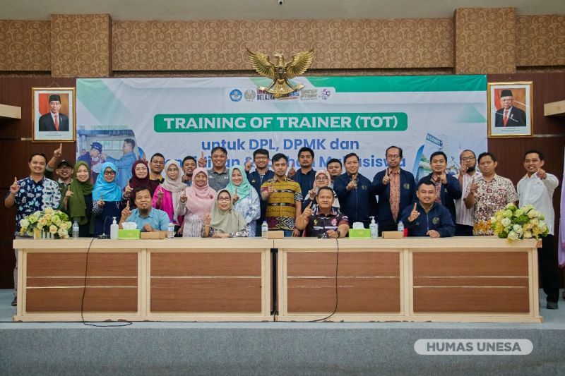 Unesa.ac.id, SURABAYA—Divisi KKN yang bernaung di bawah Subdirektorat MBKM, Direktorat Akademik UNESA menyelenggarakan Training of Trainer (ToT) untuk Dosen Pendamping Lapangan (DPL) dan Dosen Penanggung Jawab Mata Kuliah (DPMK) serta Pendidikan dan Pelatihan (Penlat) Mahasiswa secara daring pada Sabtu-Minggu, 19-20 Agustus 2023.