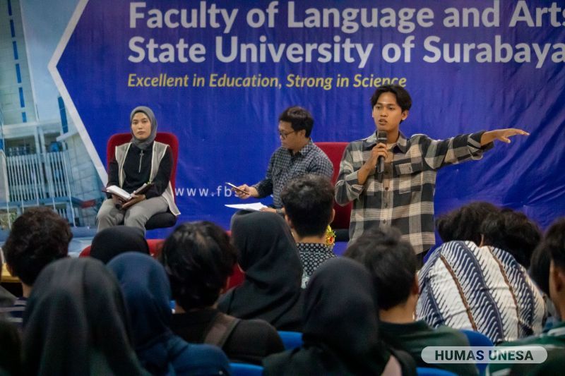 Unesa.ac.id, SURABAYA—Prodi Desain Komunikasi Visual (DKV), Fakultas Bahasa dan Seni (FBS) Universitas Negeri Surabaya (UNESA) gelar Talkshow Pasar Desain dengan tema 'Designing the Future: Navigating AI Infused Visual Branding' di Auditorium T14 FBS, Kampus Lidah Wetan, pada Jumat, 10 November 2023 .