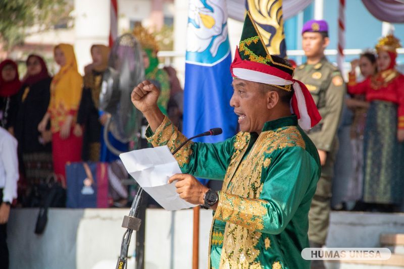 Upacara dipimpin Rektor UNESA, Prof. Dr. Nurhasan, M.Kes atau Cak Hasan. Dia menyampaikan sambutan Kementerian Pendidikan, Kebudayaan, Riset, dan Teknologi (Kemendikbudristek), Nadiem Anwar Makarim.