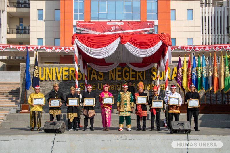 Prosesi yang berjalan khidmat itu diikuti seluruh jajaran sivitas akademika selingkung UNESA. Tema upacara yang diangkat tahun ini merupakan tema bersama nasional HUT ke-78 RI yaitu, "Terus Melaju Untuk Indonesia Maju".