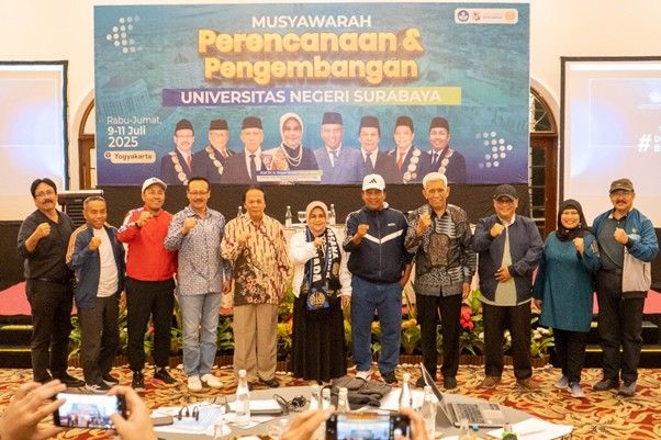 Unesa.ac.id. SURABAYA—Universitas Negeri Surabaya (Unesa) melaksanakan Musyawarah Perencanaan dan Pengembangan (Musrenbang) di Yogyakarta pada Rabu—Jumat, 9—11 Juli 2025. Agenda tahunan ini dipimpin langsung Rektor Unesa, Nurhasan atau Cak Hasan bersama Senat Akademik Universitas (SAU), dan Majelis Wali Amanat (MWA).